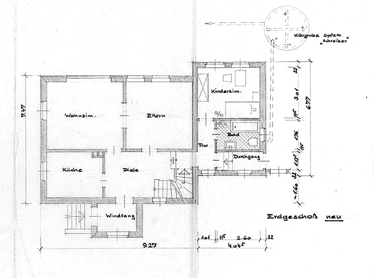Das Haus ist im Ursprungsteil unterkellert. Neben einer zusätzlichen Dusche im Heizungskeller befindet sich hier noch ein Waschkeller mit Trocknungsmöglichkeit und ein Regenwasserbassin. Vom Kellerflur erreicht man zwei kleinere Kellernischen und noch einen größerer Lagerkeller.